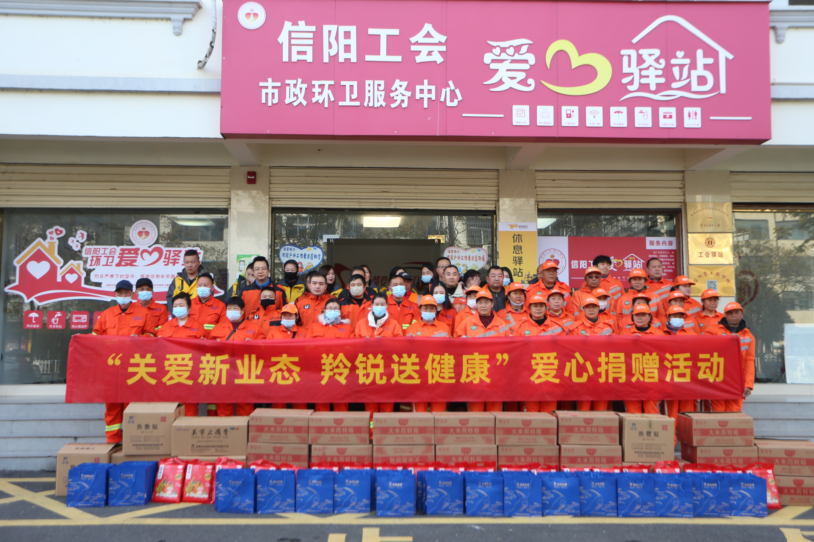 11月22日,正是二十四节气的小雪,新县金兰山街道康畈社区内,外卖员、快递员等新就业群体代表喜提“冬日暖心礼包”;信阳市政环卫服务中心工会爱心驿站里,羚锐制药联合信阳市总工会举办的“关爱新业态,羚锐送健康”爱心捐赠活动在此展开,为在寒风中坚守岗位的户外劳动者们送上价值近10万元的爱心物资,现场掌声不断,暖意融融。